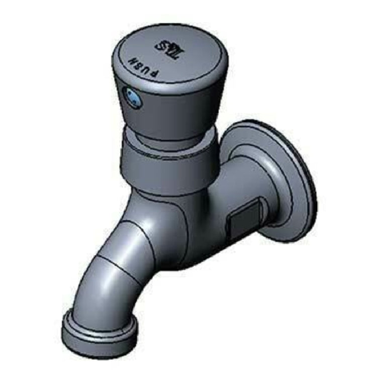 The T&S Brass B-0700-01 Single Sink Faucet is a highly durable and efficient plumbing solution designed for specialized use in various settings, including commercial kitchens and healthcare facilities. This faucet features a single hole base and is intended for single temperature usage, making it ideal for environments where consistent water temperature is necessary. Its wall-mounted design allows for optimal space utilization and ease of access. The faucet is equipped with a push button cap that includes a vandal-resistant screw, enhancing its security and durability in public or high-use areas. The plain end outlet and 1/2" NPT female inlet ensure straightforward installation and compatibility with existing plumbing systems. Constructed from chrome-plated brass for both the body and handle, this faucet not only offers a sleek aesthetic but also ensures long-lasting performance in demanding environments. Notably, the T&S Brass B-0700-01 complies with low lead standards, is NSF certified, cCSAus approved, and ADA compliant, highlighting its adherence to high safety and health standards. This faucet is tailored for varied industry segments, including hospitality, food service, and healthcare, where reliability and compliance are paramount.