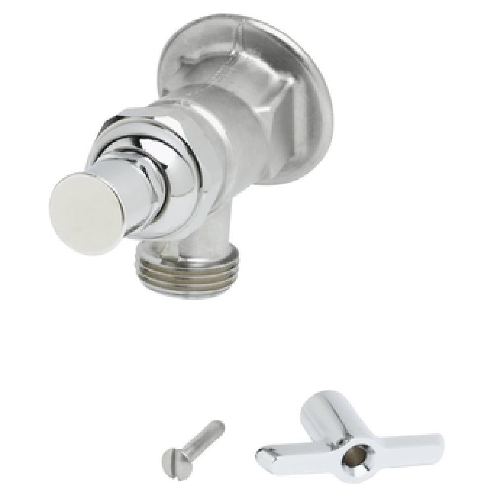 The T&S Brass B-0731-POL Sill Faucet is a versatile plumbing fixture designed for various industrial and commercial applications. This faucet is equipped with a 3/4-inch flanged female inlet, ensuring a secure and stable connection to your water supply systems. On the outlet side, it features a 3/4-inch hose thread, making it compatible with standard hoses for diverse operational needs. The removable loose key handle adds an extra layer of convenience, allowing for easy control and maintenance. Constructed with a durable bronze body, this sill faucet promises longevity and resistance to wear and corrosion, making it a reliable choice in challenging environments. The polished chrome finish not only enhances its aesthetic appeal but also provides an extra layer of protection against tarnishing and damage. Ideal for use in various sectors, from industrial facilities to commercial sites, the T&S Brass B-0731-POL Sill Faucet delivers dependable performance and durability, catering to industries that require robust water dispensing solutions. Its meticulous design and construction make it a practical choice for operations demanding both reliability and ease of use in their plumbing appliances.