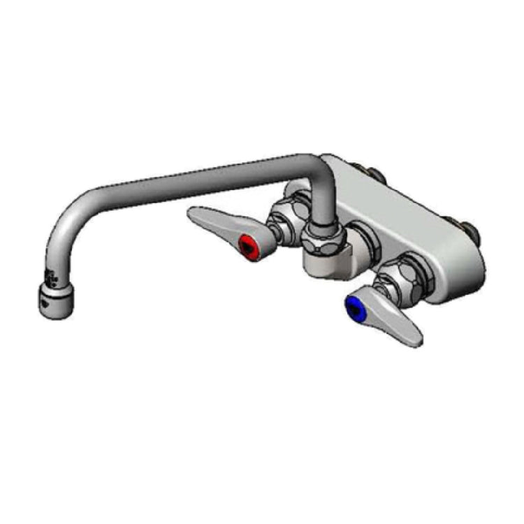 The T&S Brass B-1107 Faucet - 10" Swing Nozzle Back Mounted is a meticulously engineered plumbing fixture that stands out for its functional design and compliance with industry standards. Featuring a 10-inch swing nozzle, this faucet is ideal for installations that require a range of motion, making it a versatile choice for various commercial and residential applications. The back-mounted design ensures a streamlined aesthetic and easy installation, catering to spaces where front mounting is not feasible. Equipped with quarter-turn Eterna cartridges, the B-1107 Faucet allows for smooth operation and long-lasting durability, reducing the need for frequent maintenance. The low lead composition of this faucet underscores its compliance with health and safety regulations, making it suitable for environments where water quality is of utmost concern. Additionally, its ADA compliance highlights its accessibility features, ensuring usability for all individuals, including those with disabilities. This faucet's technical specifications and thoughtful design make it an excellent choice for different market segments, from healthcare facilities that prioritize hygiene and safety, to hospitality sectors that demand reliable and efficient performance. The T&S Brass B-1107 Faucet is a testament to superior craftsmanship, offering a blend of practicality and regulatory adherence.