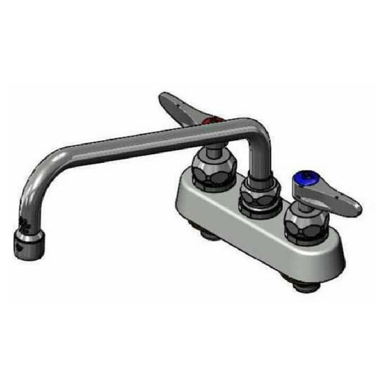 The T&S Brass B-1112-CR Workboard Faucet is a deck mount fixture boasting 4-inch centers, tailored for efficient and robust performance in both commercial and residential settings. This model is equipped with a 10-inch swing nozzle featuring a 2.2 GPM aerator, which ensures optimal water flow and conservation. Its quarter-turn cerama cartridges with integrated check valves provide precise control and prevent backflow, enhancing the faucet’s reliability and lifespan. The lever handles, complete with color-coded indexes, afford ease of use and clear identification, promoting a user-friendly experience. With 1/2-inch male inlets, this faucet is designed for straightforward installation, fitting seamlessly into a variety of work environments. Notably, the B-1112-CR adheres to low lead standards, making it a safe choice for applications demanding stringent compliance. Its certification by cCSAus and NSF underscores its adherence to quality and safety regulations. Additionally, being ADA Compliant, this faucet is accessible and suitable for use in facilities catering to individuals with disabilities. The T&S Brass B-1112-CR is a reliable, high-performance solution that meets the diverse needs of demanding industry segments, delivering exceptional functionality and compliance in every use.