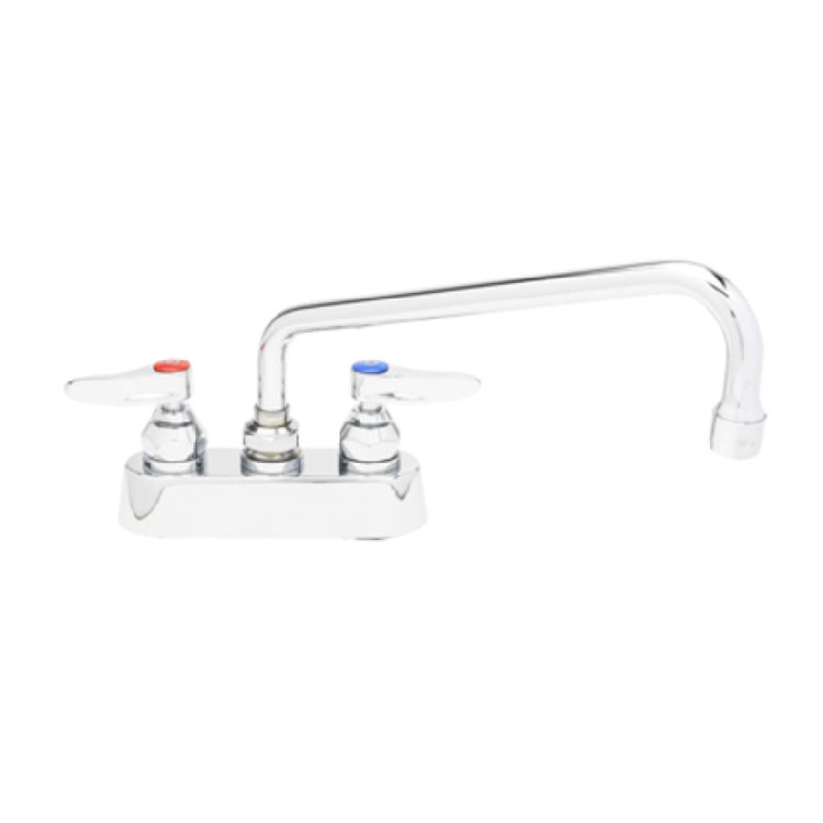 The T&S Brass B-1113 Faucet is a meticulously designed fitting, ideal for a range of commercial and residential applications requiring robust, reliable water flow solutions. Engineered for resilience, this faucet features a 4-inch deck mount, making it suitable for compact spaces while maintaining ease of use and installation. The 12-inch swing nozzle offers remarkable versatility, providing ample reach for diverse tasks, whether in food service establishments, laboratories, or healthcare facilities. This model incorporates quarter-turn Eterna cartridges, known for their durability and efficiency, ensuring smooth operation and longevity. The lever handles provide ergonomic and user-friendly control, enhancing the faucet's functionality. Furthermore, the B-1113 is classified as low lead, aligning with stringent safety regulations and promoting health-conscious use. It is also ADA Compliant, making it accessible and convenient for users with varying physical capabilities. These features collectively underscore the T&S Brass B-1113 Faucet's commitment to delivering exceptional performance, safety, and accessibility within diverse operational environments, making it a valuable asset across various industry segments. This faucet is not only a practical solution but also a testament to T&S Brass's dedication to quality and innovation in plumbing solutions.