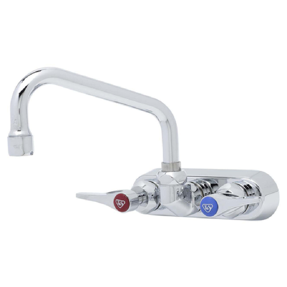 The T&S Brass B-1115-CR Faucet Workboard Swivel Wall Mount is a versatile fixture designed for various professional settings that require a reliable and efficient water control solution. This wall-mounted faucet features a 6-inch long swivel spout and is engineered with 4-inch centers, allowing for seamless integration into standard workboard configurations. The inclusion of lever handles facilitates user-friendly operation, while the cerama cartridges ensure durability and smooth performance over time. To prevent backflow, the faucet is equipped with check valves, enhancing its functionality in high-demand environments. The vandal-resistant design, coupled with a 2.2 GPM aerator, ensures both security and water efficiency. Constructed from low-lead materials and finished in polished chrome, this faucet not only meets aesthetic standards but also complies with ADA, ANSI, and NSF regulations, guaranteeing safety and accessibility for all users. For ease of installation, it includes a lock washer (014200-45) and features a 1/2-inch male NPT connection. The T&S Brass B-1115-CR Faucet Workboard Swivel Wall Mount is an ideal choice for industry professionals looking for a low-maintenance, high-performance faucet that meets stringent safety and operational standards.