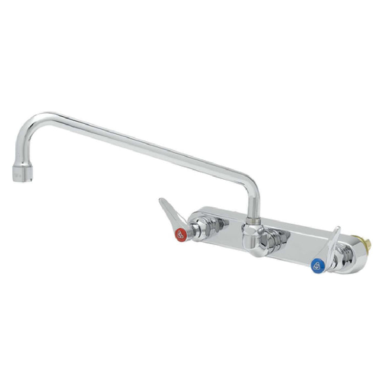 The T&S Brass B-1128-XS-F12 Workboard Faucet is a meticulously crafted splash/wall mount faucet featuring 8-inch centers, making it a versatile addition to commercial kitchens and utility spaces. It boasts a 12-inch swivel spout equipped with a 1.2 gallons per minute aerator, ensuring efficient water flow and conservation. The inclusion of a lock washer enhances installation stability. This faucet is designed with lever handles for ease of use and incorporates Eterna cartridges with spring checks for reliable performance and longevity. It utilizes 1/2-inch NPSM extended male inlets, and comes complete with tailpieces and nuts for a 1/4-inch NPT connection, facilitating straightforward installation. Notably, the T&S Brass B-1128-XS-F12 is low lead compliant, aligning with safety regulations, and is ADA compliant, ensuring accessibility for all users. This faucet represents a blend of durability, functionality, and compliance, catering to the specific needs of the food service industry and other commercial applications where reliable water access is paramount. Its robust design and thoughtful engineering make it a valuable component for professional environments demanding high performance and adaptability.