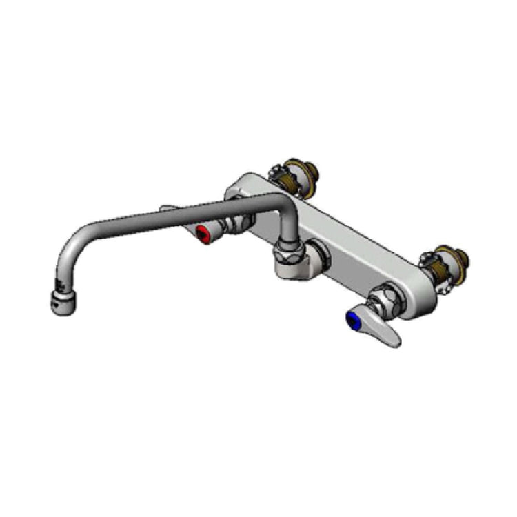 The T&S Brass B-1128-XS Workboard Faucet Wall Mount 8" Centers is a high-performance fixture designed for efficiency and durability in commercial kitchens and workstations. This wall-mounted faucet features 8-inch centers, ensuring a sturdy and reliable installation. With a 12-inch swing spout, it provides excellent reach and flexibility, catering to various washing and rinsing needs. The faucet is equipped with extra long shanks, enhancing its adaptability to different installation environments. It utilizes quarter-turn Eterna cartridges, known for their longevity and reliability, reducing the need for frequent replacements. Committed to safety and environmental standards, the T&S Brass B-1128-XS is low lead compliant, ensuring a safe water supply. Furthermore, it meets ADA compliance standards, making it accessible to a wider range of users. This combination of features makes the T&S Brass B-1128-XS an ideal choice for different segments within the hospitality and foodservice industries, where durability, compliance, and efficiency are paramount. Its robust design and compliance features underline its suitability for professional use, offering a reliable solution for high-demand environments.
