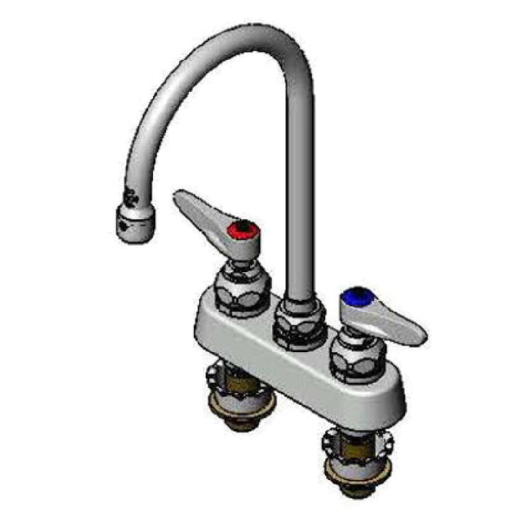 The T&S Brass B-1141-XS Faucet Gooseneck Nozzle Deck Mount is engineered for superior performance across various professional environments, including commercial kitchens and laboratories, where reliability and durability are paramount. This faucet features a distinctive gooseneck nozzle design, which is ideal for tasks requiring a versatile range of motion and height clearance. The B-1141-XS model is equipped with 2" IPS shanks, specifically designed for mounting on thicker surfaces, ensuring a secure and stable installation. It boasts quarter-turn Eterna cartridges, known for their longevity and smooth operation, providing exceptional control over water flow and temperature. The lever handles are designed for easy, intuitive use, accommodating a range of user preferences. Significantly, this product is low lead, aligning with health and safety standards for potable water applications. It is also ADA compliant, making it accessible and functional for users with disabilities. These features collectively underscore the faucet's suitability for high-demand settings, emphasizing its adaptability, safety, and compliance with regulatory standards. The T&S Brass B-1141-XS Faucet Gooseneck Nozzle Deck Mount is an exemplary choice for businesses seeking a robust and versatile faucet solution that can withstand rigorous usage and meet extensive industry requirements.