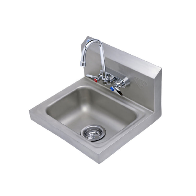 T&S Brass, B-1146-02A-CR-4W, Hand Sink, stainless steel, with 4" wall mount mixing faucet with chrome plated brass body, 4 3/8" rigid gooseneck, 2.2 GPM aerator, ceramic cartridges with check valves, lever handles, 1/2" NPT male inlets and chrome plated excutcheon. Certified to ASME A112.18.1/CSA B125.1, ASME A112.18.2/CSA B125.2, ASME A112.19.3/CSA B45.4, NSF 61-Section 9 and NSF 372. Meets ADA ANSI/ICC A117.1 requirements