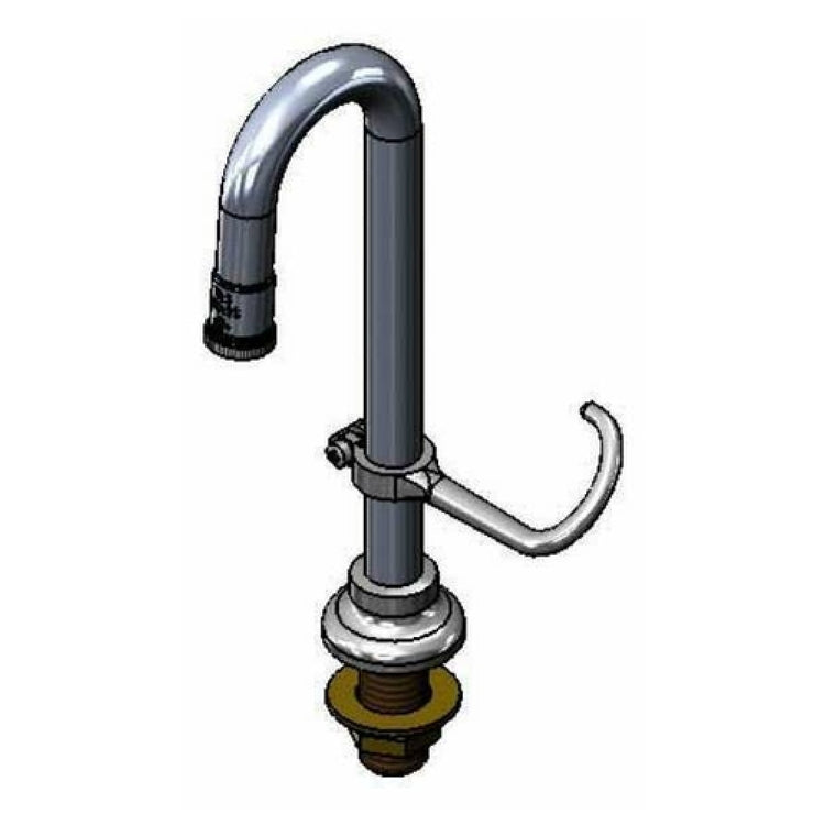 The T&S Brass B-2140 Nozzle-Rigid Gooseneck is a precision-engineered component designed for a range of industry applications requiring reliable and efficient water delivery solutions. This nozzle stands 9-3/16 inches tall with a 2-3/4 inch spread, providing optimal reach and coverage. It features a stream regulator outlet that ensures a consistent and controlled water flow, essential for both commercial and industrial settings. The design includes a finger hook and center flange, adding functional convenience and ease of use. Notably, the B-2140 is constructed to meet low lead requirements, aligning with stringent safety and environmental standards. It is certified by cCSAus and NSF, which underscores its compliance with high safety and sanitation benchmarks. The B-2140’s rigid gooseneck design is particularly valuable in environments where durability and stability are critical, making it a preferred choice for establishments in the food service industry, laboratories, and healthcare facilities. Its robust construction and technical specifications make the T&S Brass B-2140 an indispensable tool for professionals seeking a dependable and high-performing nozzle solution.