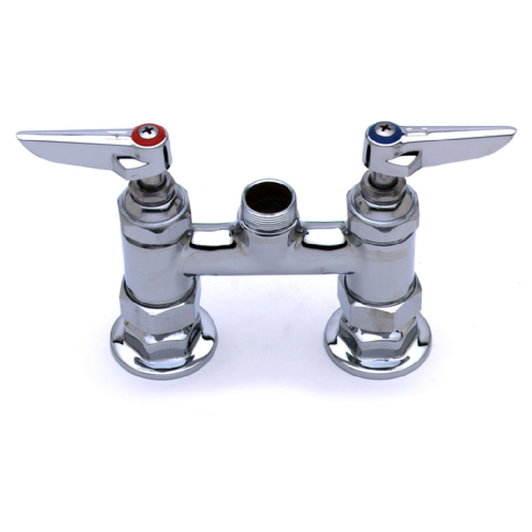 The T&S Brass B-2245-LN Swivel Base Faucet Deck Mount Swivel Base is a highly adaptable fixture designed for precision and efficiency in various commercial settings. Featuring a deck-mounted configuration and a distinctive swivel base, this faucet is engineered for spaces that require versatile water access. With 6" centers, it supports a 059X swing nozzle, although it comes less the nozzle, allowing for customized attachment options based on specific operational needs. The faucet is equipped with 1/2" NPT inlets, ensuring compatibility with standard plumbing systems. Additionally, it meets ADA compliance standards, highlighting its accessibility and ease of use for all individuals. This robust and reliable faucet is ideal for food service establishments, laboratories, and other industrial environments where functionality and durability are paramount. Its unique design facilitates seamless integration into various setups, catering to a wide range of industry requirements and ensuring consistent performance in demanding conditions. Whether utilized in a high-volume kitchen or a specialized lab, the T&S Brass B-2245-LN offers a practical solution for professionals seeking a customizable and ADA-compliant water fixture. Its technical specifications and flexible design make it a valuable component for diverse applications within the industry.
