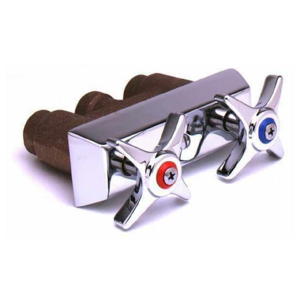 The T&S Brass B-2265 Mixing Faucet is a concealed deck mount faucet, engineered for precision and durability in various industrial and commercial settings. Featuring 3-inch centers, this faucet integrates Eterna cartridges, renowned for their longevity and reliability, ensuring smooth operation over time. The black polypropylene 4-arm handles provide ergonomic ease and a sturdy grip, enhancing user experience. With 3/8-inch NPT male inlets and outlets, this faucet is designed for efficient water flow management, catering to the needs of professional environments. The B-2265 model is crafted to meet rigorous industry standards, being low lead compliant and certified by NSF and cCSAus, underscoring its commitment to safety and health standards. Additionally, it adheres to ADA compliance, promoting accessibility for users with disabilities. This mixing faucet is a practical choice for businesses seeking a balance of functionality, compliance, and design excellence in their plumbing fixtures.