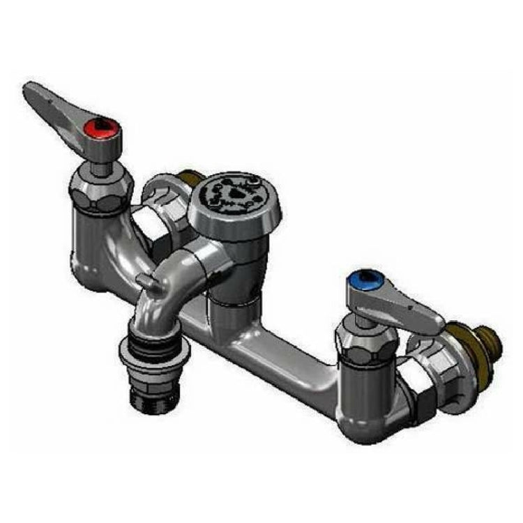The T&S Brass B-2271-POL-CR Service Sink Faucet is a highly efficient plumbing solution designed for wall mounting with 8-inch adjustable centers. This faucet is distinctively engineered with a vacuum breaker spout that features a convenient pail hook and garden hose outlet, complete with a quick disconnect outlet. The inclusion of quarter-turn Cerama cartridges with check valves ensures reliable performance and durability. Lever handles with color-coded indexes provide ease of use and enhanced functionality. Crafted from polished chrome-plated brass, this faucet aligns with low lead standards, making it a safe choice for diverse environments. It features 1/2-inch NPT female inlets, making it compatible with various installation setups. The T&S Brass B-2271-POL-CR is NSF certified, underscoring its compliance with health and safety regulations, and is also cCSAus and ADA compliant, attesting to its adaptability and accessibility in various professional settings. Whether used in commercial kitchens, janitorial applications, or educational institutions, this faucet stands as a robust and versatile choice, offering a blend of practicality and compliance with industry standards.