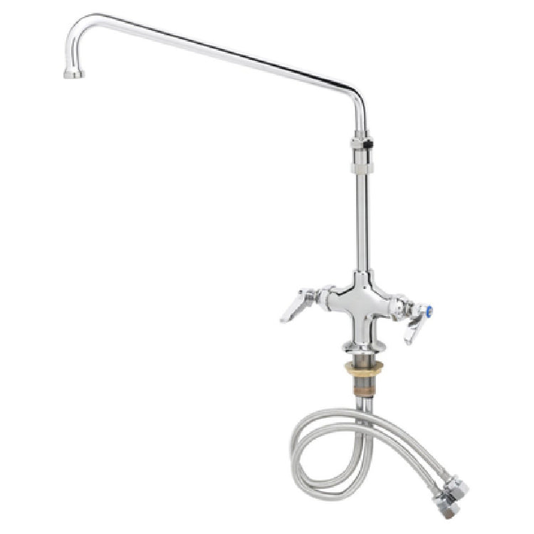 The T&S Brass B-2294 Pantry Faucet is a highly functional and versatile fixture, designed with double 1/2" NPT male inlets that cater to a variety of installation requirements. Featuring an elevated 14" swing nozzle, this faucet is adept at providing an extended reach, making it suitable for a wide range of commercial and industrial applications. The stream regulator ensures a consistent and controlled water flow, enhancing the faucet's efficiency and water-saving capabilities. The inclusion of lever handles facilitates easy and precise control, while the quarter-turn Eterna cartridges guarantee a long-lasting and reliable operation. This faucet meets low lead standards, ensuring safety and compliance with health regulations. As an ADA Compliant product, it is accessible and user-friendly for all, including individuals with disabilities. The T&S Brass B-2294 Pantry Faucet is an ideal choice for industry professionals seeking a robust, reliable, and compliant water fixture that offers excellent performance across varying operational environments.