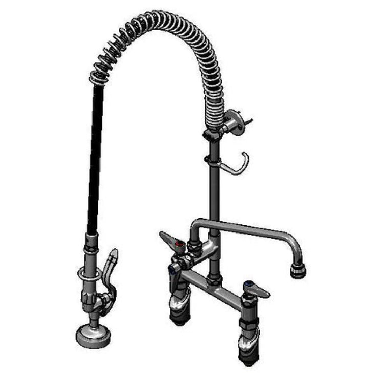 T&S Brass B-2430-B145X44H EasyInstall Pre-Rinse Unit Spring Action Gooseneck 8" Deck Mount Mixing Faucet & Add-on Faucet