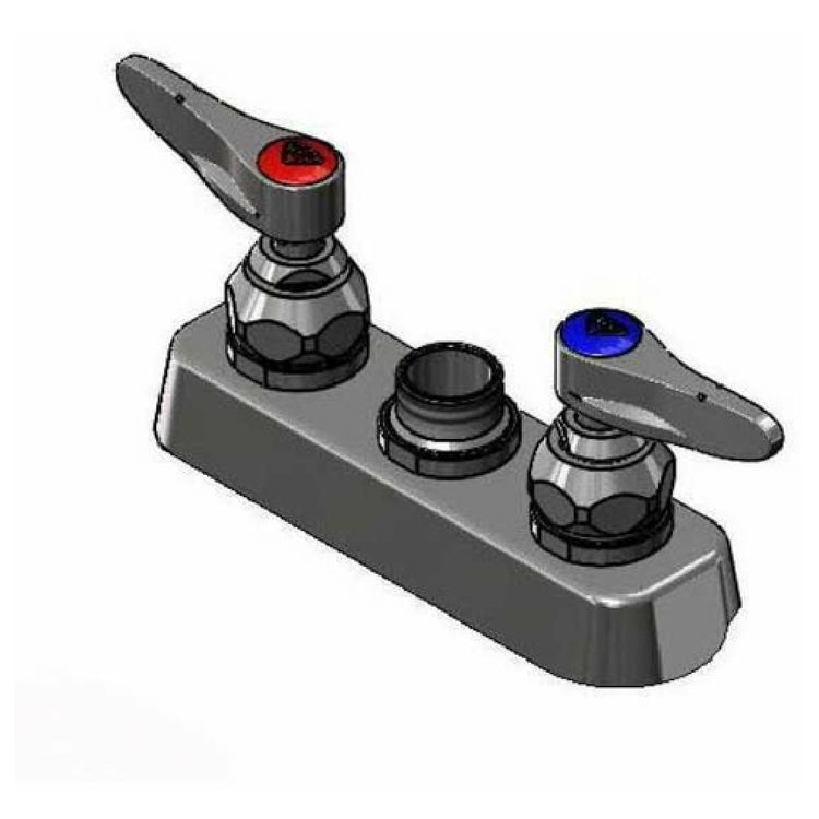 The T&S Brass B-5110-LN Workboard Mixing Faucet is a versatile and reliable fixture designed for various commercial settings, offering exceptional durability and compliance with industry standards. This deck mount faucet features 4-inch centers, making it suitable for compact installations while maintaining robust functionality. It is equipped with lever handles that include color-coded indexes for easy identification and use. The faucet utilizes quarter-turn Eterna cartridges with spring checks, ensuring a long-lasting, drip-free experience and preventing cross-flow of water, which enhances operational efficiency. Although it is specified as being "less nozzle," its swivel outlet is designed to accept swing nozzles, allowing for flexibility in meeting diverse operational requirements. The 1/2-inch NPT male inlets make it compatible with standard plumbing connections, simplifying installation across various work environments. Furthermore, the T&S Brass B-5110-LN is low lead compliant, aligning with health and safety regulations, and it is ADA compliant, ensuring accessibility for all users. This faucet is strategically engineered to meet the needs of different market segments within the industry, such as foodservice operations, educational institutions, and healthcare facilities, making it a pragmatic choice for professionals seeking reliability and compliance in their fixtures.