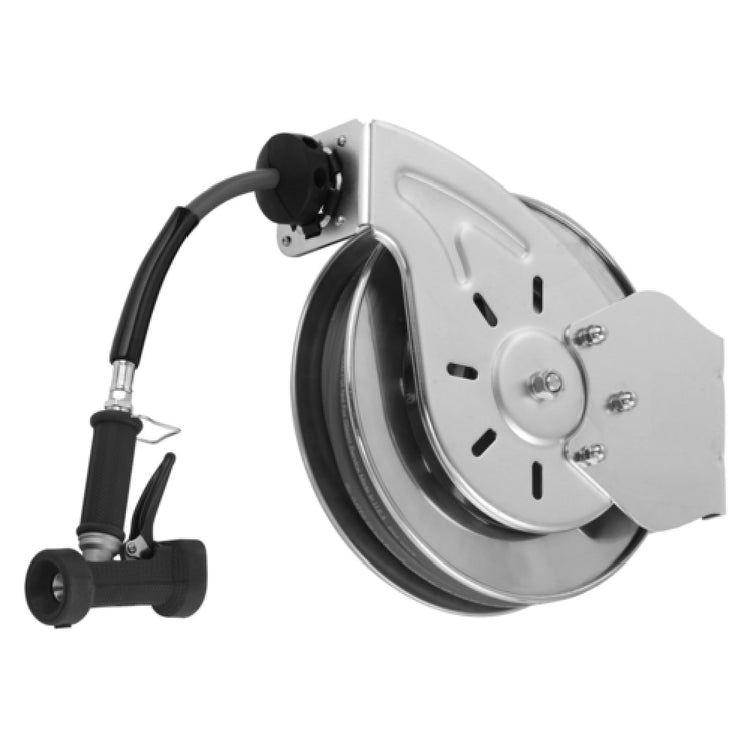 The T&S Brass B-7132-02 Hose Reel is a meticulously engineered open reel system that features a durable 3/8" x 35' hose, designed to meet the rigorous demands of various professional settings. Enhanced with a stainless steel rear trigger spray valve, this hose reel ensures precise control and efficient water flow, ideal for industries requiring reliable water distribution. The inclusion of a robust ratcheting system allows for secure hose retraction and easy handling, which is complemented by an adjustable hose bumper for tailored hose length management. Constructed entirely from stainless steel, the T&S Brass B-7132-02 is built for longevity and resistance to corrosion, making it a suitable choice for harsh environments. This hose reel is particularly beneficial for sectors such as food service, agriculture, and industrial maintenance, providing a blend of durability and functionality. The stainless steel construction not only enhances its aesthetic appeal but also ensures compliance with stringent hygiene standards. Overall, the T&S Brass B-7132-02 Hose Reel stands out as a versatile and dependable tool, catering to diverse market needs by combining advanced features with a commitment to quality and performance.