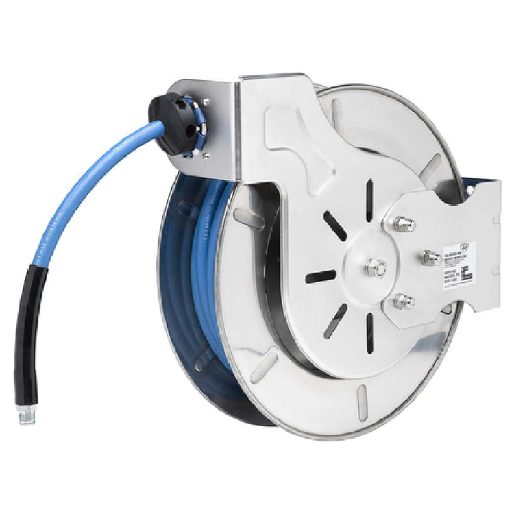 The T&S Brass B-7133 Hose Reel System - an open, versatile solution featuring a robust 1/2" x 35' hose - is designed for demanding industrial environments requiring reliable and efficient water management. Engineered without a spray valve, this system offers flexibility for various applications, ensuring adaptability to specific operational needs. The inclusion of a ratcheting system enhances user convenience, allowing easy retraction and secure hose positioning during use and storage. Additionally, the adjustable hose bumper provides customization for precise hose length control, maximizing operational efficiency. Crafted from high-quality stainless steel, the T&S Brass B-7133 ensures durability and resistance to corrosion, promising longevity even in harsh conditions. This hose reel system is ideally suited for industries such as food service, hospitality, and sanitation, where robust and reliable water management solutions are paramount. Its design targets performance and ease of use, making it a valuable component for professionals seeking to optimize workflow efficiency and maintain high sanitation standards.