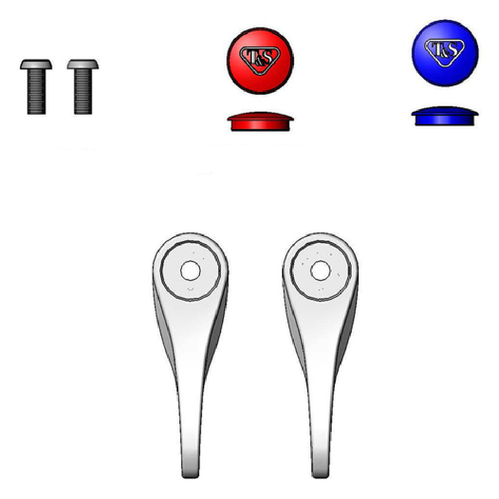 The T&S Brass B-9K-NS-AM Parts Kit is an innovative component kit designed with precision to meet the needs of various industry segments requiring durable and hygienic faucet operation solutions. This kit includes two 4-inch wrist-action handles, each coated with an anti-microbial finish that offers exceptional protection against bacterial growth, ensuring a hygienic environment. The kit also features a red hot index and a blue cold index for clear and effortless identification of water temperature controls, enhancing user experience and safety. Additionally, it comes with two lever handle screws, providing a complete set for secure installation and operation. These components are crafted to the highest standards, making them suitable for environments where cleanliness and reliability are paramount, such as healthcare facilities, commercial kitchens, and other high-use public areas. The T&S Brass B-9K-NS-AM Parts Kit stands out with its unique combination of safety, functionality, and durability, making it a valuable asset for professionals seeking dependable faucet solutions. This parts kit ensures that every installation is up to the task, delivering consistent performance and long-lasting quality, which is critical in demanding settings where equipment reliability is non-negotiable.