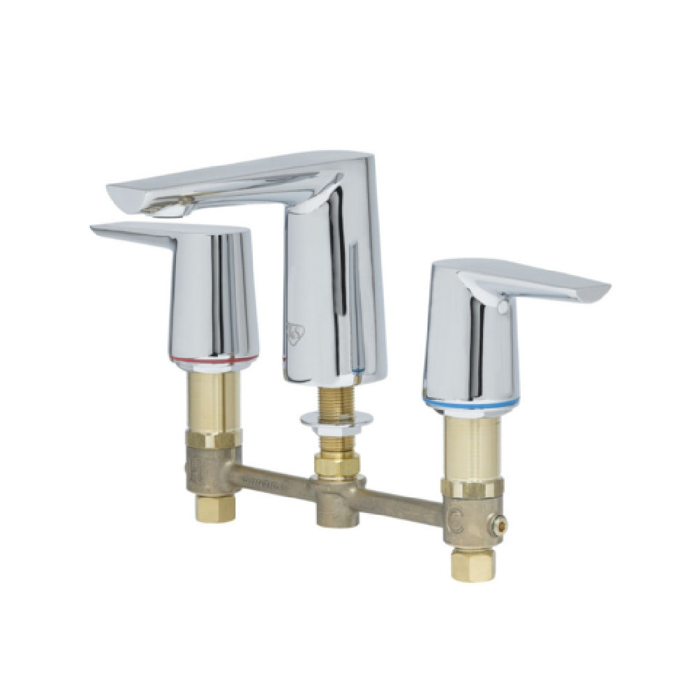 The T&S Brass BP-2995 LakeCrest Aesthetic Concealed Widespread Faucet - Polished Chrome is a sophisticated fixture combining aesthetic appeal with functionality, designed to seamlessly integrate into various market segments within the plumbing industry. This faucet, finished in polished chrome, offers a sleek and modern appearance that enhances the decor of any bathroom or kitchen setting. The widespread design provides flexibility in installation, allowing for a customizable fit to suit diverse countertop and sink configurations. Engineered for durability, the T&S Brass BP-2995 features a concealed mechanism, maintaining a clean and uncluttered look. Ideal for both residential and commercial applications, this faucet meets the demands of users looking for both style and performance. With its high-quality construction and elegant design, the T&S Brass BP-2995 LakeCrest faucet is a choice fixture for those seeking to elevate the aesthetic and functional aspects of their spaces. Whether in upscale hotels, modern residential bathrooms, or commercial spaces, this faucet offers a unique value proposition through its combination of timeless design and enduring quality, catering to a wide range of customer preferences and installation environments.
