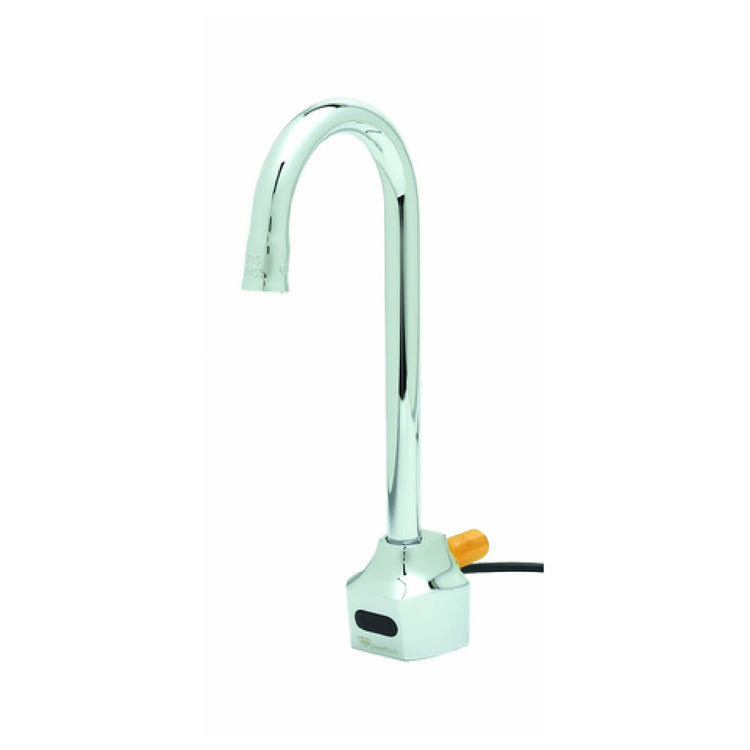 The T&S Brass EC-3101-XP-LF10 ChekPoint™ Electronic Faucet - wall mount, is a sophisticated plumbing solution designed for efficiency and reliability. This faucet features a rigid plain-end gooseneck that ensures a steady and controlled water flow. With a 1.0 gpm flow control, it provides a precise water output suitable for various industrial applications where water conservation is crucial. The electronic faucet is powered by a versatile 100-240 VAC adapter, accommodating different electrical standards and making it adaptable for a wide range of settings. This product is ideal for sectors demanding high hygiene standards and efficient water usage, such as healthcare facilities, laboratories, and commercial kitchens. The T&S Brass EC-3101-XP-LF10 is engineered to deliver consistent performance while its electronic operation significantly reduces the risk of contamination, making it a preferred choice for environments where sanitation is paramount. Furthermore, the wall-mounted design saves valuable counter space, thus enhancing the overall functionality of the workspace. By integrating advanced technology with practical design, this electronic faucet stands as a testament to T&S Brass’s commitment to innovation and quality in the plumbing industry.
