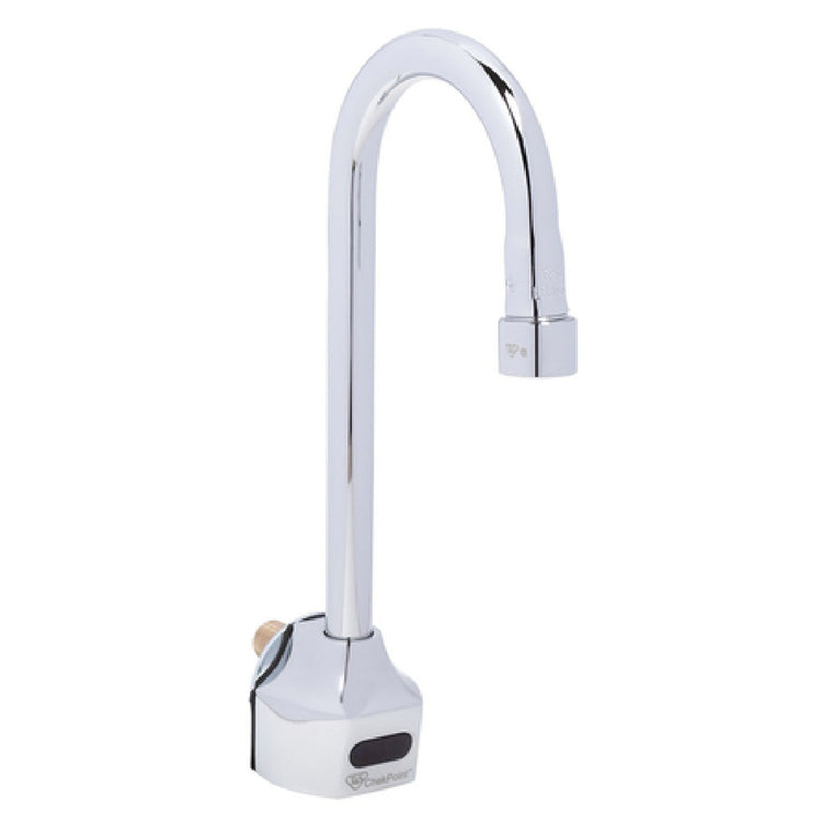 The T&S Brass EC-3101TMVHGF10 Electronic Faucet Wall Mount ASSE 1070 TMV is a sophisticated fixture designed to deliver both efficiency and security in commercial and institutional settings. Featuring an EC-hydrogen system, this electronic faucet offers a precise flow rate of 1.0 GPM through its vandal-resistant aerator, ensuring optimal water usage and durability. The wall-mounted design positions it as an ideal choice for areas where countertop space is at a premium, while the inclusion of an ASSE 1070 thermostatic mixing valve (TMV) ensures compliance with safety standards, providing accurate temperature control to prevent scalding. An optional 100-240 VAC adapter is included, highlighting the product's adaptability to various power requirements, which is critical for facilities with diverse infrastructure. This faucet's construction and performance make it suitable for a wide range of applications, from healthcare facilities requiring stringent hygiene standards to public restrooms necessitating robust and reliable fixtures. The T&S Brass EC-3101TMVHGF10 stands out as a technologically advanced solution, engineered to meet the rigorous demands of modern commercial environments with its combination of advanced features and compliance with key safety standards.
