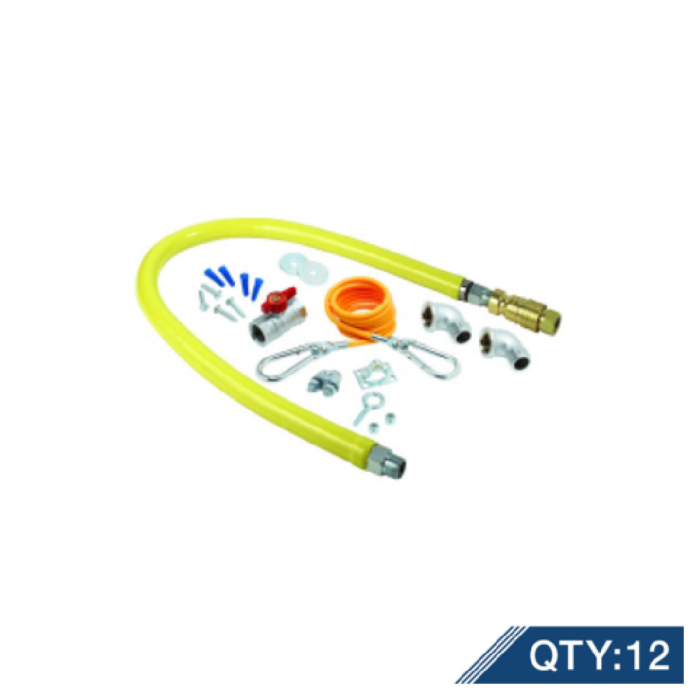 The T&S Brass HG-4D-48K-M12 HG-4D-48K Master Pack with Gas Hose and Quick Disconnect is a versatile and essential component for various industrial applications, particularly in settings that demand robust and reliable gas connection solutions. This product is specifically designed with a 3/4" NPT connection, ensuring compatibility with standard gas piping systems. The gas hose measures 48 inches in length, providing ample flexibility and reach for diverse installation requirements. Each master pack is thoughtfully curated to include an installation kit, comprising 12 units per case, making it an efficient choice for businesses needing multiple installations. The quick disconnect feature of the gas hose is particularly advantageous for environments where timely and secure connections are crucial, enhancing both safety and operational efficiency. With a focus on high-quality brass construction, the T&S Brass HG-4D-48K-M12 offers durability and longevity, catering to the demanding needs of industries such as food service, hospitality, and commercial manufacturing. Its comprehensive package and precision-engineered design make it a valuable asset for professionals seeking reliable gas connection systems. By integrating this master pack into your operations, you ensure a consistent and dependable gas supply, pivotal for maintaining productivity and safety across various applications.