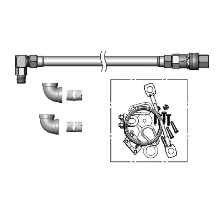 The T&S Brass HG-4D-48SEL-FF Safe-T-Link Gas Connector Hose is engineered for precision and reliability in gas connection applications. Featuring a 3/4-inch connection and a 48-inch hose, it is meticulously designed with stainless steel braiding and an extruded coating to ensure durability and resistance to wear. This gas connector hose is equipped with one Quick-Disconnect Swivelink fitting, enhancing ease of use and flexibility during installation and maintenance. Additionally, it includes two 3/4-inch elbows, which facilitate seamless integration into existing gas systems. For safety and stability, the product comes with a 5-foot restraining cable kit, ensuring secure operation under various conditions. With a minimum flow capacity of 180,000 BTU per hour, it is tailored to meet the demanding requirements of commercial cooking environments, making it an essential component for restaurants, catering services, and other food service establishments. The combination of advanced features and robust construction makes the T&S Brass HG-4D-48SEL-FF Safe-T-Link Gas Connector Hose a reliable and efficient choice for professionals seeking quality and performance in their gas connection solutions.
