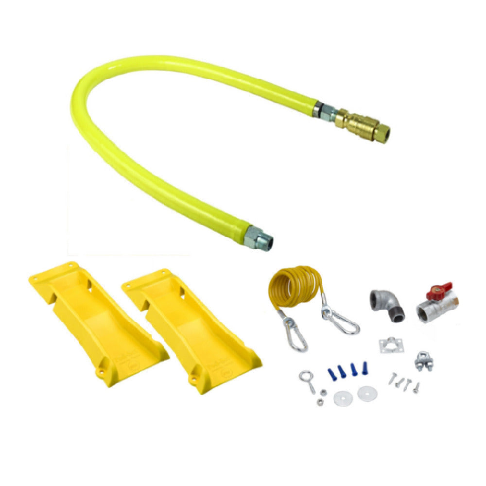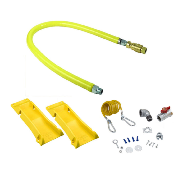 The T&S Brass HG-4D-48SEL-PS Safe-T-Link Gas Connector Hose is a meticulously designed solution for secure and efficient gas connections, making it ideal for a wide range of industrial applications. This 48-inch hose features a 3/4-inch connection, engineered with stainless steel braiding and an extruded coating, ensuring durability and reliability in demanding environments. A standout aspect is its minimum flow capacity of 180,000 BTU/hr, accommodating high-demand operations with ease. This connector hose is equipped with a Quick-Disconnect feature, facilitating swift and safe disconnections without compromising integrity. Its Swivelink fitting offers flexibility and ease of installation, while the inclusion of two elbows provides additional versatility in setups. The cable kit & Posi-Set enhance security and stability, reinforcing the hose’s performance. This product is specifically crafted for professionals seeking a reliable and robust gas connector that seamlessly integrates into various operational frameworks, underscoring T&S Brass's commitment to quality and innovation in gas connection solutions.
