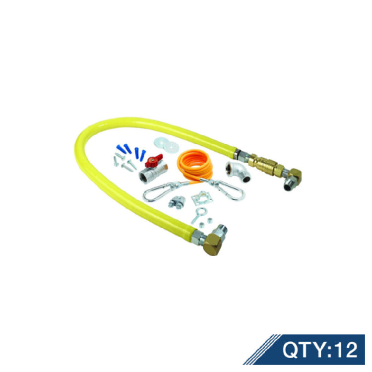 T&S Brass, HG-4D-48SK-M12, Gas Hose w/ Quick Disconnect, 3/4" NPT x 48" Long, Installation Kit & SwiveLink Fittings. 48" coated gas appliance connector hose with 3/4" NPT male connections, swivel fittings and installation kit. Certified to ANSI Z21.69/CSA 6.16, NSF 2 (12 each per case)