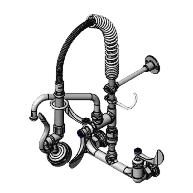 The T&S Brass MPX-8WWV-08-CR Mini Pre-Rinse Unit is a precision-engineered solution for commercial kitchens seeking efficiency and convenience. This unit is equipped with a low flow spray valve, enhancing water conservation without compromising on performance. The 8-inch swing nozzle provides versatile reach and maneuverability, perfect for thorough cleaning tasks in tight spaces. A key feature is the built-in vacuum breaker, which prevents backflow, ensuring the safety and integrity of your water supply. The inclusion of ceramas, known for their durability and resistance to wear, extends the longevity of the unit, making it a cost-effective investment over time. The wrist action handles are designed for ease of use, promoting ergonomic efficiency in high-volume environments. This mini pre-rinse unit is tailored for various segment markets within the foodservice industry, including restaurants, cafes, and catering operations, where space and resource optimization are paramount. Each component of the T&S Brass MPX-8WWV-08-CR has been meticulously designed to meet the rigorous demands of commercial kitchens, providing a reliable and high-performance tool for daily operations. Its compact design and advanced features make it an essential addition to any professional kitchen setup.