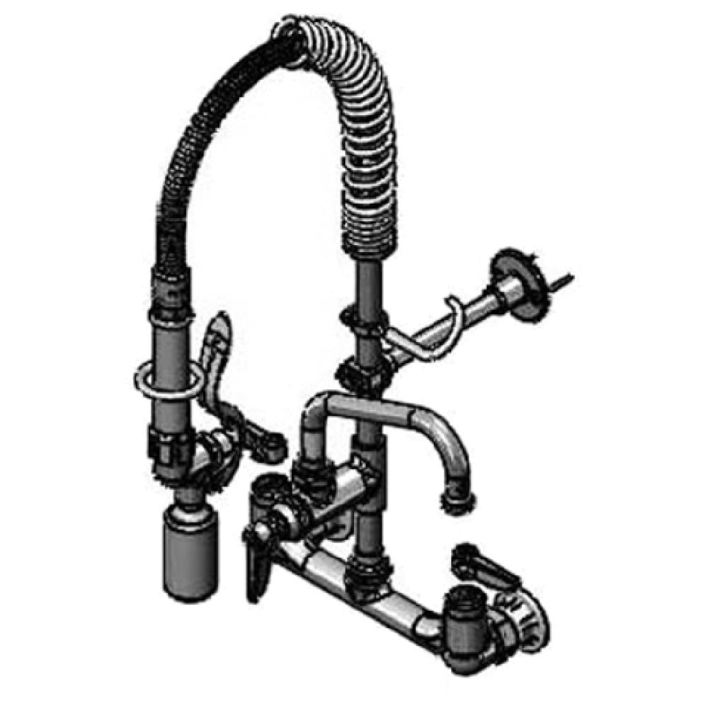 T&S Brass MPY-8WLN-08 Mini Pre-Rinse Unit 8" Wall Mount Base Faucet Compact Spring & Flex Hose