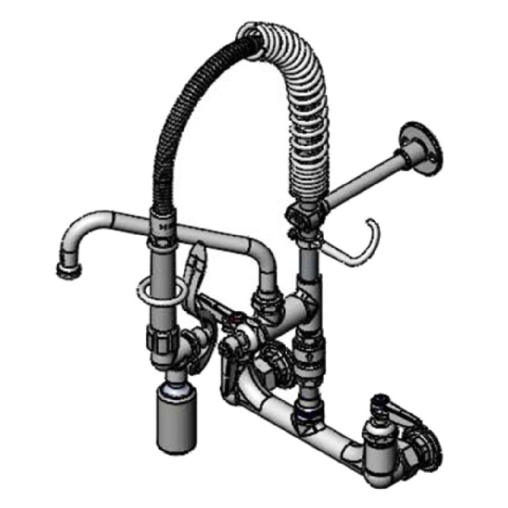 The T&S Brass MPY-8WLV-08-CR Mini Pre-Rinse Unit is an efficient and compact solution for commercial kitchens looking to enhance their cleaning operations. This unit features an 8-inch wall mount design, ensuring it fits seamlessly into tight spaces while providing maximum accessibility. Equipped with a low flow spray valve, it is engineered to conserve water without compromising on performance, making it an environmentally friendly choice for businesses aiming to reduce their operational footprint. The inclusion of a vacuum breaker adds a layer of safety by preventing backflow, ensuring that water supply remains uncontaminated. Additionally, this unit comes with an 8-inch add-on faucet nozzle, offering versatility for various cleaning tasks. The ceramas components promise durability and longevity, designed to withstand the rigorous demands of continuous commercial use. The T&S Brass MPY-8WLV-08-CR is a valuable investment for restaurants, cafeterias, and other food service establishments seeking a reliable, space-saving pre-rinse solution that balances performance with water conservation.