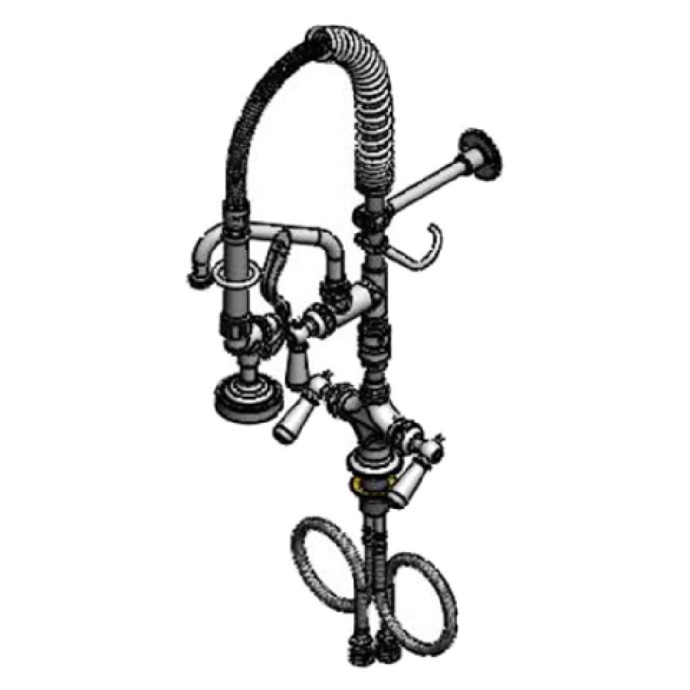 The T&S Brass MPZ-2DCV-06-CR Mini Pre-Rinse Unit is designed to cater to the diverse needs of the food service industry with precision and efficiency. This unit features a low flow spray valve, which is instrumental in conserving water without compromising performance. The 6-inch swing nozzle provides flexibility in reaching different sink areas, enhancing usability in tight kitchen spaces. The inclusion of a ceramas component underscores its durability and resistance to wear, making it a long-lasting investment for any commercial kitchen. Additionally, the built-in vacuum breaker is a critical feature that prevents backflow contamination, ensuring compliance with health and safety standards. The club handle design enhances grip and maneuverability, making it user-friendly for operators. This mini pre-rinse unit is particularly suitable for establishments looking to optimize water use and maintain rigorous sanitation protocols. Its compact design and robust technical specifications make it an ideal choice for both small-scale operations and larger kitchens that require a reliable and efficient pre-rinse solution.