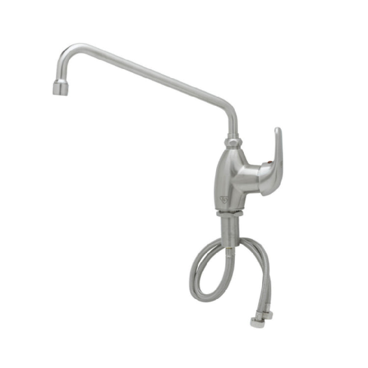 T&S Brass, S-2785-S062X, EverSteel Single hole deck mount single lever faucet, 12" swing nozzle with stream regulator outlet, ceramic cartridge, 18” flexible supply hoses with G1/2 female swivel connections, stainless steel construction, Certified to ASME A112.18.1/CSA B125.1, NSF 61-Section 9 and NSF 372. Meets ADA ANSI/ICC A117.1 requirements.