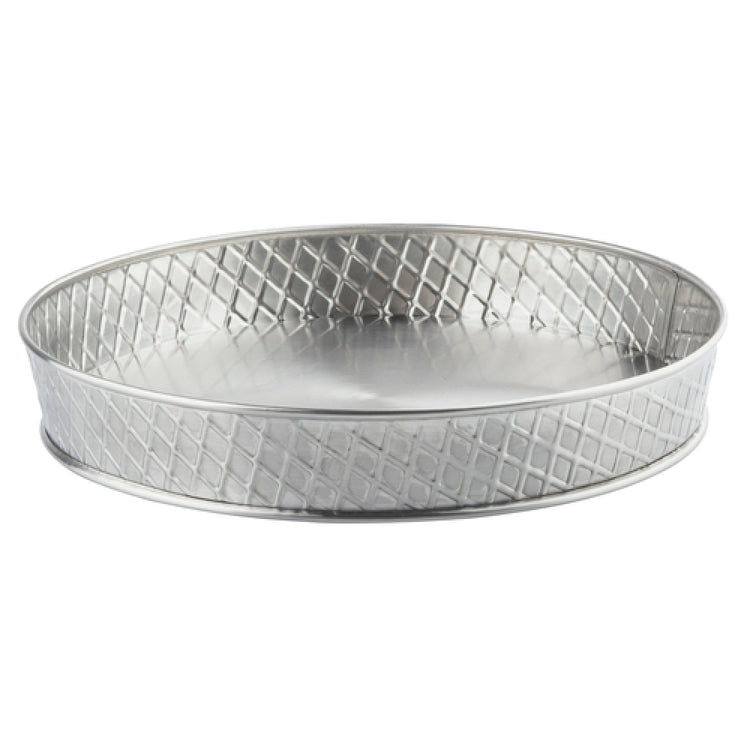 The Tablecraft 10035 Lattice Collection™ Platter is a versatile dining accessory with a distinct combination of style and functionality, designed to meet the diverse needs of the food service industry. This platter measures 10-1/2 inches in diameter and 1-1/2 inches in height, making it an ideal size for serving a variety of dishes in both casual and formal settings. Crafted from durable stainless steel, the platter not only offers longevity but also adds a touch of elegance to any table setup. Its round shape and intricate lattice design make it a standout piece, suitable for restaurants, catering services, and home entertainers aiming for a sophisticated presentation. The stainless steel construction ensures that the platter is resistant to rust and corrosion, providing a reliable serving option for both indoor and outdoor events. The Tablecraft 10035 is a practical choice for those in the hospitality industry looking for a blend of aesthetic appeal and robust performance, making it a valuable addition to any collection looking to elevate their dining experience. Its construction also allows for easy cleaning and maintenance, which is a crucial aspect for busy food service operations focusing on efficiency and hygiene.