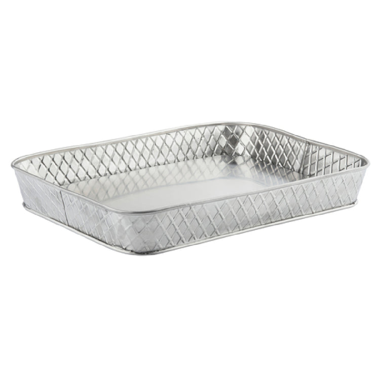 The Tablecraft 10039 Lattice Collection™ Platter is a high-quality rectangular platter measuring 12" x 9" x 1-1/2". Crafted from durable stainless steel, this platter combines functionality with an elegant design, making it a versatile addition to any dining or catering setup. Its sleek and modern lattice pattern enhances its aesthetic appeal, appealing to both contemporary and classic dining environments. The platter's size and shape make it suitable for presenting a variety of dishes, from appetizers to desserts, making it ideal for restaurants, hotels, or home entertaining. The stainless steel construction guarantees longevity and resistance to staining, tarnishing, and corrosion, ensuring it maintains its polished look over time. Its compact dimensions allow for easy storage and handling, while the slightly elevated edges help prevent spills and ensure a neat presentation. The Tablecraft 10039 Lattice Collection™ Platter is particularly valuable for establishments focused on upscale dining, as its sophisticated design enhances the visual appeal of any culinary presentation. Its robust construction also makes it a practical choice for high-traffic areas where durability is essential. This platter seamlessly blends style with practicality, serving the needs of various market segments within the hospitality and food service industries.