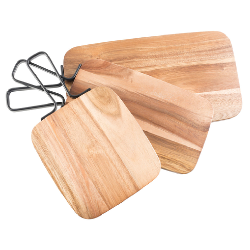 The Tablecraft 10076 Industrial Collection™ Serving Paddle is a meticulously designed piece for culinary professionals and enthusiasts alike, measuring 9-1/8"W x 8-1/4"D x 3/5"H with an overall length of 14". Crafted from acacia, it features distinctive metal banding that enhances its aesthetic appeal with a rustic yet modern touch. The serving paddle's light brown hue complements various dining settings, making it versatile for different segment markets within the industry, from upscale restaurants to casual bistros and home kitchens. The rectangular shape, coupled with a practical handle, ensures ease of use for serving a variety of dishes, from artisanal cheeses to charcuterie boards. The combination of durable acacia wood and metal banding not only ensures longevity but also adds a unique visual contrast that stands out. This serving paddle is an ideal addition for establishments looking to elevate their presentation, offering a blend of functionality and style that caters to both form and function. Its robust construction ensures it can withstand the rigors of frequent use while maintaining its elegant appearance, thus providing a unique value proposition in the food service industry.