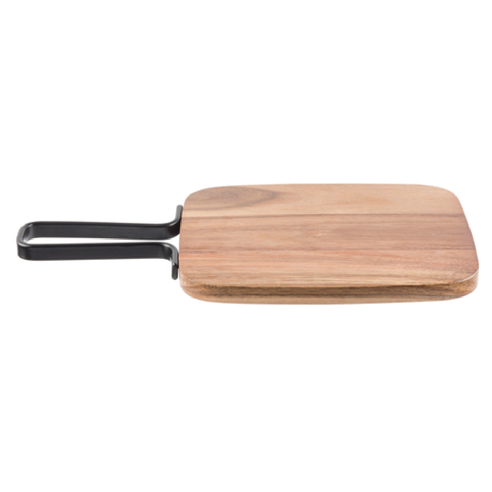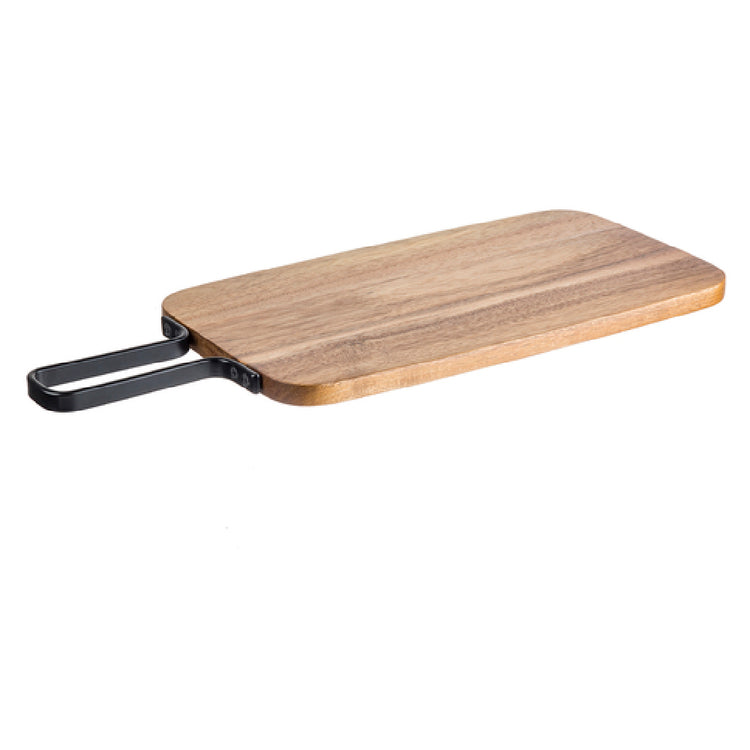 The Tablecraft 10077 Industrial Collection™ Serving Paddle is a meticulously crafted serving accessory designed to meet the demands of various dining settings. With dimensions measuring 12-1/8 inches in width, 7-1/8 inches in depth, and a height of 3/5 inches, this serving paddle offers ample space for presenting culinary creations. Additionally, it boasts an overall length of 17 inches, inclusive of a practical handle for ease of use. This serving paddle is constructed from acacia wood, known for its durability and attractive natural finish, complemented by metal banding that adds a touch of industrial charm. The light brown hue of the acacia wood enhances its aesthetic appeal, making it suitable for both rustic and contemporary table settings. Ideal for restaurants, catering events, and home dining experiences, the Tablecraft 10077 offers a blend of functionality and style. Its rectangular shape is designed to accommodate a variety of foods, from appetizers to main courses, while the sturdy handle ensures easy transport from kitchen to table. The combination of durable materials and thoughtful design makes this serving paddle a valuable addition to any food service establishment seeking to elevate presentation and functionality in their dining environments.