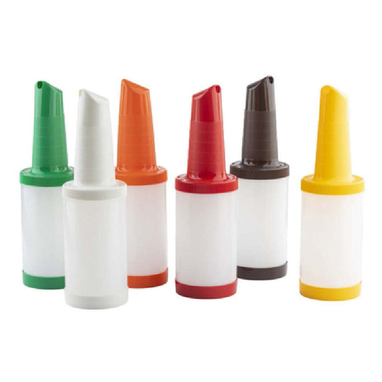The Tablecraft 10285A Pourmaster® Complete Unit Quart One Piece is a versatile solution designed for efficient liquid storage and dispensing. This meticulously crafted unit features a quart-sized one-piece design, ensuring seamless integration and ease of use. The Pourmaster® Complete Unit is equipped with a variety of six assorted color-coded neck spouts and bases, with two options each in green, white, orange, red, brown, and yellow. These color-coded components enable quick identification and organization, making it particularly valuable for diverse sectors such as restaurants, bars, and catering services where multiple liquids need to be managed simultaneously. The thoughtful design promotes a streamlined workflow, reducing spillage and enhancing operational efficiency. Its robust construction supports rigorous daily usage, offering reliability and durability for busy environments. The Tablecraft 10285A Pourmaster® is an indispensable tool for professionals seeking precise and organized liquid handling capabilities, providing a practical and efficient solution for both commercial and hospitality industries. With its functional design and attention to detail, this unit emphasizes quality and convenience in liquid management.