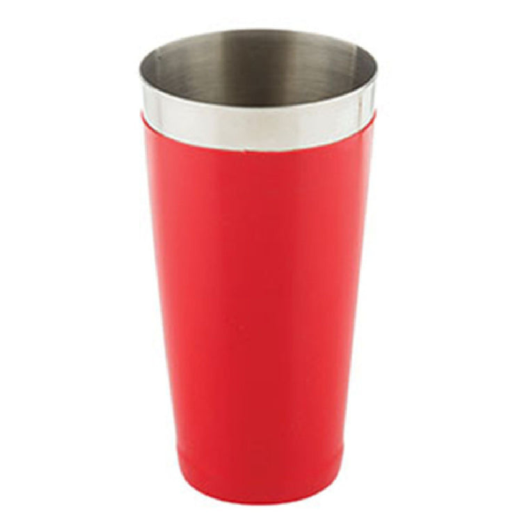 The Tablecraft 10369 Bar Shaker 16 Oz. Vinyl Coating is a versatile tool ideal for professional bartenders and cocktail enthusiasts alike, designed to enhance the efficiency and style of any bar setup. This bar shaker boasts a 16-ounce capacity, making it suitable for mixing a variety of cocktail recipes while maintaining precision and control. It is constructed from durable stainless steel, ensuring long-lasting use and resistance to wear and tear in high-demand environments. The shaker's standout feature is its vibrant red vinyl coating, which not only adds an eye-catching aesthetic but also provides a secure, non-slip grip, enhancing safety and ease of use during busy service hours. This design consideration is particularly beneficial in fast-paced settings such as busy bars and restaurants. The combination of stainless steel and vinyl coating also offers an easy-to-clean surface, maintaining hygiene standards effortlessly. The Tablecraft 10369 is a quintessential addition to any mixology toolkit, and its blend of functionality, durability, and style meets the needs of both high-volume commercial establishments and home bar aficionados alike. The product's sleek design complements various bar decors, while its practical features ensure consistent performance during beverage preparation.