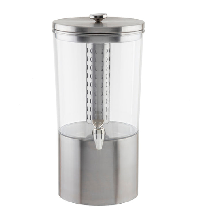 The Tablecraft 10450 Upscale Beverage Dispenser is a sophisticated solution for serving drinks, combining functionality with an elegant design for various industry segments. This dispenser boasts a 2-1/2-gallon capacity, catering effectively to large gatherings or professional events where beverage service is crucial. Crafted from high-quality stainless steel, it ensures durability and a sleek appearance, perfectly complementing upscale settings. The dispenser features a nickel-plated ABS faucet, providing a reliable and smooth pouring experience while enhancing the product's aesthetic appeal. Additionally, its Tritan® reservoir offers exceptional clarity and resilience against impacts, making it suitable for frequent use in busy environments. Supported by a sturdy stainless steel base, this dispenser promises stability and longevity. Designed for versatility, the Tablecraft 10450 fits seamlessly in hospitality venues, catering businesses, and high-end dining establishments, ensuring an impeccable beverage presentation. Its technical specifications and robust construction make it a practical and stylish choice for those who value both performance and design in their beverage service equipment.