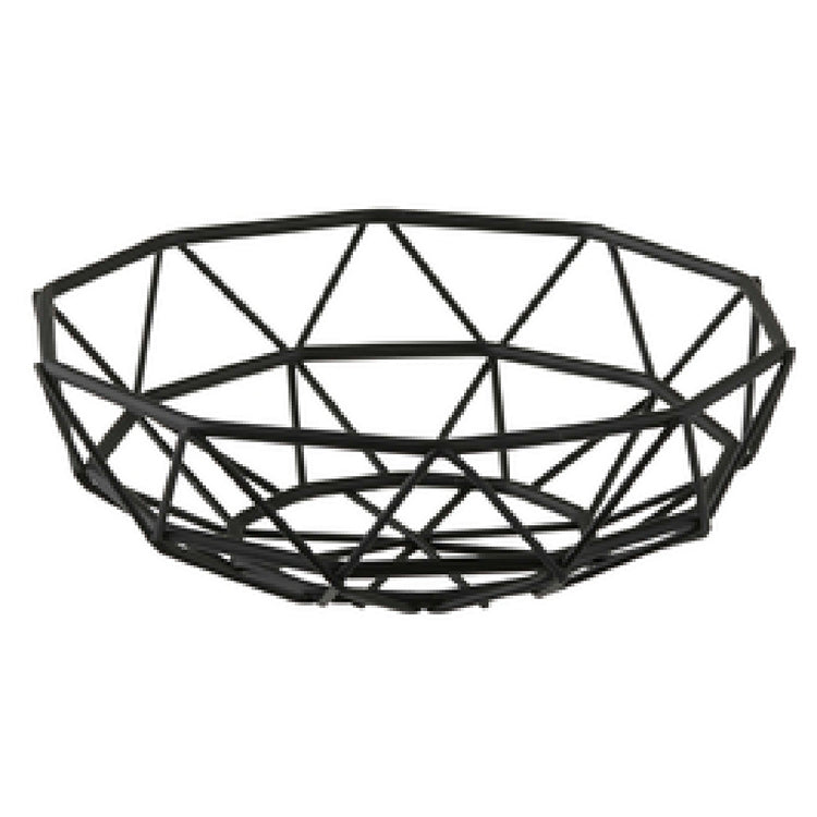 The Tablecraft 10462 Delta Series Wire Basket 6" Dia. X 2"H Round is a sophisticated and versatile solution for various display and storage needs. Constructed from powder-coated steel, this black wire basket not only boasts durability but also adds a touch of elegance to any setting. With a diameter of 6 inches and a height of 2 inches, it is ideally sized for serving small food items such as bread rolls, fruits, or packaged snacks, making it an essential accessory in restaurants, cafes, and catered events. Its round design allows for easy integration into existing table settings while maintaining a sleek, modern aesthetic. The powder coating provides an additional layer of protection against wear and tear, ensuring the basket remains a reliable choice over time. Suitable for both commercial and residential use, the Tablecraft 10462 Delta Series Wire Basket is an excellent addition to any establishment looking to enhance its functional display solutions. Its classic black finish complements various decor styles, while its robust construction ensures it can withstand the demands of busy food service environments. This basket exemplifies a perfect blend of form and function, catering to diverse market segments seeking quality and style in their food presentation tools.