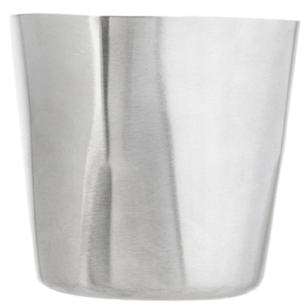 The Tablecraft 10675 Fry Cup is a versatile and stylish addition to any dining or food service setting, designed for serving a variety of fried foods or appetizers. This fry cup features a 12 oz. capacity, making it ideal for single servings or shared appetizers. With dimensions of 3-1/2 inches by 3-1/4 inches by 3-3/8 inches, it sports a compact triangular design that enhances presentation while saving space on the table. Crafted from high-quality stainless steel, the Tablecraft 10675 offers durability and resistance to corrosion, ensuring long-term usability. The brushed finish adds a touch of elegance, making it suitable for a range of environments, from casual eateries to upscale restaurants. Its modern design and sturdy construction make it a practical choice for food service professionals looking to combine functionality with aesthetics. This fry cup is particularly useful in fast-food settings, cafes, and pubs where presentation and durability are key. Its unique size and shape cater to different market segments, including restaurants that prioritize efficient use of space and those that emphasize a unique dining experience. The Tablecraft 10675 Fry Cup stands out as a practical and appealing serving solution in the food service industry.