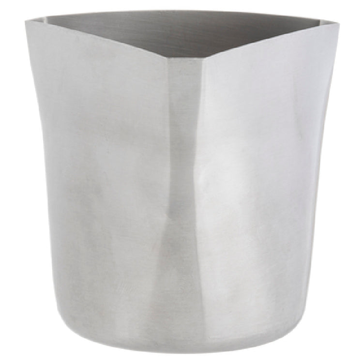 The Tablecraft 10676 Fry Cup is a robust and stylish option designed for both functionality and aesthetic appeal, catering to diverse segments within the food service industry. With a substantial capacity of 13 oz., this square fry cup measures 3-1/8" x 3-1/8" x 3-3/8", making it an ideal choice for serving a variety of fried foods, from delicate appetizers to hearty side dishes. Crafted from high-quality stainless steel, this fry cup boasts a brushed finish that adds a touch of sophistication to any table setting, while also ensuring durability and resistance to corrosion. The square shape not only enhances presentation but also maximizes storage space when stacking multiple units. Its sleek design and reliable build make it suitable for both high-end dining establishments and casual eateries, providing a versatile and long-lasting serving solution. Whether used in bustling restaurants or cozy cafes, the Tablecraft 10676 Fry Cup is a practical and elegant addition to food service operations, meeting the needs of professionals who value both form and function in their serving ware.