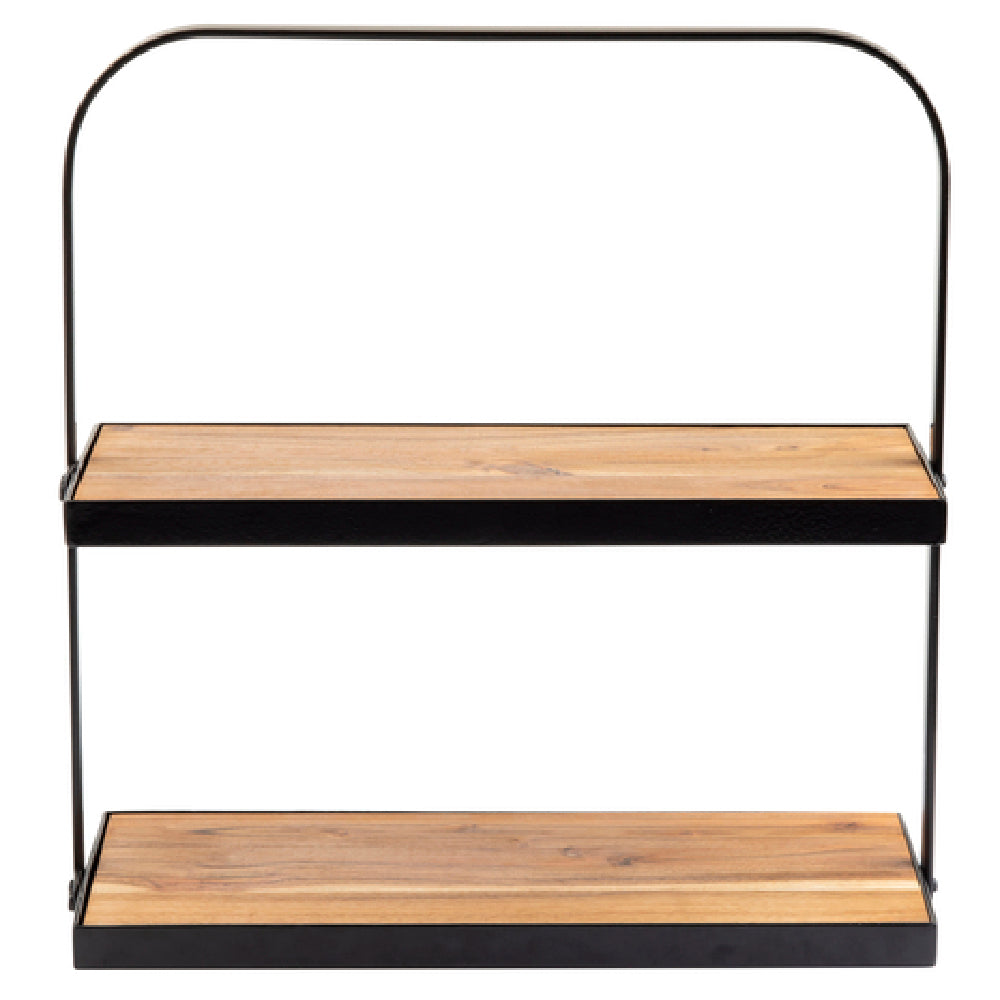 The Tablecraft 10718 Display Stand is a versatile two-tier display solution measuring 17-3/10" x 8" x 18", perfect for showcasing a variety of products in retail and hospitality settings. Its rectangular shape provides ample space while maintaining a compact footprint that fits easily into any display area. Constructed from durable acacia wood, the stand offers a warm, natural aesthetic enhanced by its collapsible design, making it convenient for storage and transport. The black powder-coated metal frame not only adds a sleek, modern look but also provides a sturdy foundation, ensuring stability and longevity. This display stand is ideal for markets ranging from restaurants seeking to present food items attractively, to retail stores aiming to highlight featured merchandise, or any business in need of a stylish and functional display unit. Its dual-tier design allows for increased product visibility and organization, catering to diverse display needs while maximizing space efficiency. The Tablecraft 10718 Display Stand combines practicality with elegance, making it a valuable addition to any professional display setting.