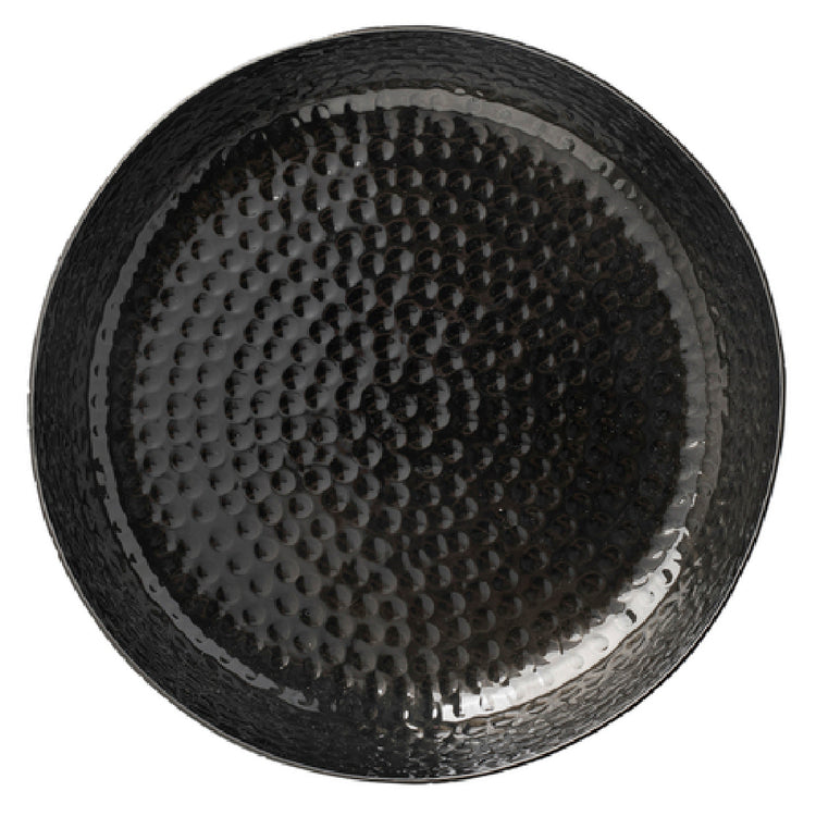The Tablecraft 10736 Platter 8-1/2" Dia. Round is a meticulously crafted serving piece designed to meet the needs of diverse market segments within the foodservice industry. With its 8-1/2 inch diameter, this round platter is perfectly sized for serving appetizers, desserts, or small entrees, making it an ideal choice for restaurants, catering services, and hospitality venues. Made from high-quality aluminum, the platter boasts a unique crackle pattern that adds a touch of elegance to any dining presentation. The black powder-coated finish not only enhances its visual appeal but also provides a durable layer of protection against wear and tear, ensuring long-lasting use in high-traffic environments. This combination of practical design and stylish aesthetics makes the Tablecraft 10736 Platter a valuable asset for chefs and foodservice professionals seeking to elevate their table settings with a blend of functionality and sophistication. Its robust construction and attractive finish ensure it stands out in any setting, making it suitable for both casual and formal occasions. The Tablecraft 10736 Platter's versatility and strength underscore its position as a reliable choice for industry professionals who value quality and presentation.