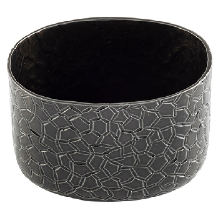 The TableCraft 10738 Sugar Packet Holder boasts dimensions of 3-1/4 inches in width, 2-3/8 inches in depth, and 2-1/8 inches in height, making it a practical and compact solution for various settings. Its oval shape, coupled with a distinctive crackle pattern, provides an aesthetic appeal that enhances any dining or beverage service environment. Constructed from durable aluminum, this sugar packet holder features a black powder-coated finish, ensuring longevity and resistance to wear and tear while adding a sleek, modern touch. Ideal for restaurants, cafes, and home use, the TableCraft 10738 facilitates easy organization and access to sugar packets, contributing to an efficient and tidy service. Its size and design make it versatile and suitable for different market segments, ranging from high-traffic commercial establishments to intimate home gatherings. The combination of functionality and style embodied in the TableCraft 10738 Sugar Packet Holder meets the needs of a broad spectrum of users, emphasizing utility without compromising on design. Its robust construction and elegant finish stand out as a testament to its quality, promising enduring performance across various industry applications.