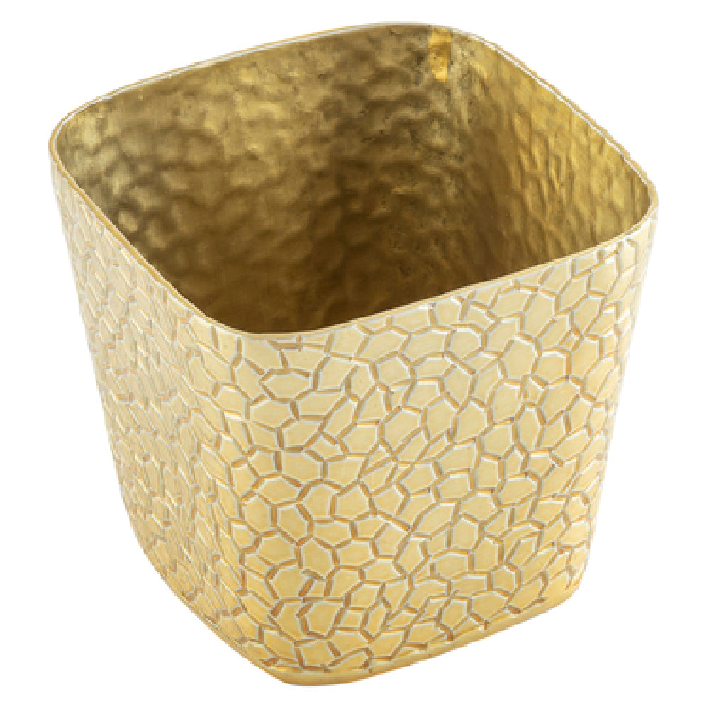The Tablecraft 10741 Snack Basket is a versatile 4-inch square container designed with a distinctive crackle pattern that enhances its visual appeal. Crafted from durable aluminum, this basket features a gold powder-coated finish, making it both aesthetically pleasing and resilient for various use cases, whether in commercial dining settings or home entertaining. The compact size of this basket ensures it fits seamlessly into different environments, from bustling restaurant tables to intimate home gatherings, providing a stylish solution for presenting snacks, appetizers, or small items. Its robust aluminum construction offers a lightweight yet sturdy option, suitable for repeated use without compromising on quality. The crackle pattern not only adds a touch of sophistication but also provides a tactile element that can enhance the dining experience. The gold powder coating not only ensures longevity by resisting wear and tear but also adds an elegant sheen that complements a variety of décor styles. This snack basket is an ideal choice for those in the hospitality industry looking to elevate their table presentations, as well as for home users seeking a functional and decorative serving solution.