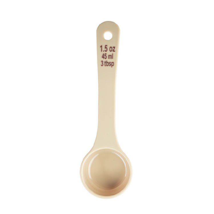 The Tablecraft 11166 Spoonout is a versatile tool engineered for precision and efficiency in food service applications, featuring a 1-1/2 oz. capacity ideal for portion control. Measuring 7.625 inches in length, 2.25 inches in width, and 1 inch in height, this solid spoonout is crafted from durable polycarbonate, ensuring long-lasting use and resistance to breakage. The short handle design, coupled with maroon capacity markings in both ounces and milliliters, facilitates easy measurement and enhances user convenience, making it indispensable for chefs and caterers. Certified by NSF, the Tablecraft 11166 Spoonout meets rigorous public health and safety standards, underscoring its reliability and high-quality manufacturing. Its compact design and precise measurement capabilities cater to a variety of market segments within the food industry, from restaurant kitchens to catering services, where precision in portioning is paramount. This spoonout's unique value proposition lies in its blend of durability, accurate capacity marking, and compliance with safety standards, positioning it as a preferred choice for professionals seeking dependable kitchen tools.