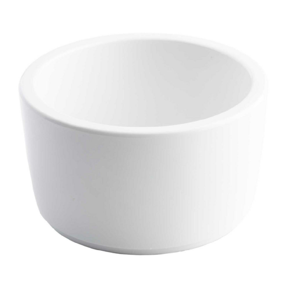 The Tablecraft 11413 Ramekin stands out with its ample 14 oz. capacity, perfectly sized for varied serving needs in the foodservice industry. With a diameter of 4.875 inches and a height of 2.875 inches, this round ramekin is designed to accommodate a wide range of culinary creations, from appetizers and sides to desserts. Its straight-sided structure not only enhances its modern aesthetic but also ensures maximizing space efficiency when serving or storing. Crafted from durable melamine, this ramekin promises longevity and resistance to chipping, making it an excellent choice for high-traffic kitchens or catering events. The pristine white color offers a timeless and versatile choice, seamlessly complementing any table setting or decor theme. Whether used in professional kitchens or at home, the Tablecraft 11413 Ramekin combines practicality with style, proving itself a must-have staple for chefs and food enthusiasts alike. Its robust construction and sleek design make it a beneficial addition to any culinary toolkit, ensuring reliability and elegance in every use.