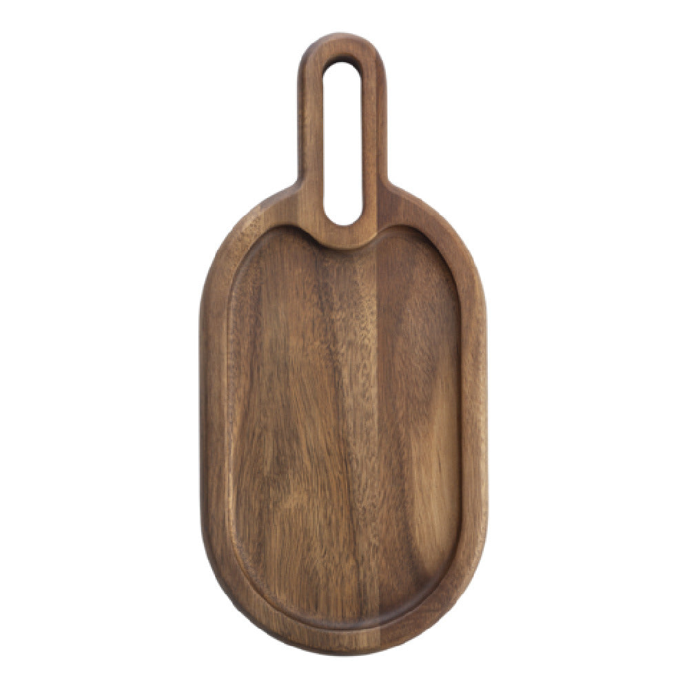 The Tablecraft 11522 Acacia Collection™ Snack Tray is a meticulously crafted serving solution designed to enhance dining experiences across various market segments. Measuring 12 inches by 5-1/2 inches with a thickness of 3/4 inches, this oblong tray is distinguished by its elegant handle, allowing for easy and ergonomic handling. Constructed from high-quality wood, this tray embodies the natural beauty and durability of the Acacia Collection™, making it a visually appealing and practical addition to any setting. Its design caters to both domestic and commercial environments, offering a versatile platform for presenting snacks, appetizers, or small dishes. The tray's dimensions provide ample space for a variety of culinary presentations, while its sturdy wooden build ensures longevity and resilience under frequent use. Whether used in upscale restaurants, cozy cafés, or home gatherings, the Tablecraft 11522 Snack Tray combines aesthetic appeal with functional excellence, making it a preferred choice for professionals seeking reliable and stylish serving ware. The incorporation of a handle further enhances its utility, allowing for effortless transport and maneuvering, aligning with the diverse demands of the food service industry.