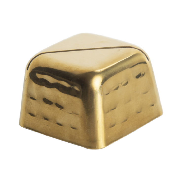 The Tablecraft 11576 Card Holder - 2" x 2" x 1.375" is a precision-crafted square display accessory that combines functionality with aesthetic appeal, specifically designed for diverse market segments including restaurants, hotels, and event planners. Constructed from high-quality stainless steel, this card holder ensures durability and longevity, making it a reliable choice for frequent use in any setting. Its hammered texture not only enhances its visual appeal but also adds a touch of sophistication to any table presentation, seamlessly blending with upscale environments. The elegant gold finish offers a luxurious appearance, making it ideal for formal settings where presentation is paramount. Measuring 2 inches in length, 2 inches in width, and 1.375 inches in height, this compact card holder is perfect for displaying table numbers, menu specials, or guest information without occupying much space. Its robust construction supports stability, ensuring that cards remain securely in place throughout use. The Tablecraft 11576 Card Holder stands out as a versatile and stylish solution for professionals in the hospitality industry, enhancing organizational and presentation efforts while adding a touch of class to any occasion.